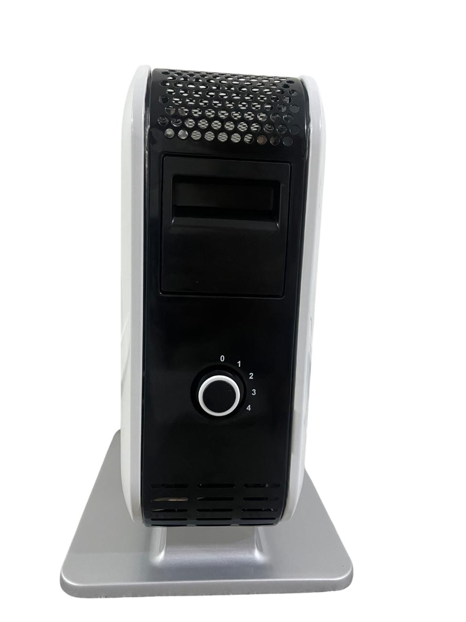بخاری برقی ۱۲۰۰ وات . رنگ کوره ای سفید. قابلیت تنظیم گرما چهار حالت در دو جهت بدنه . که از نوار وسط میتوان به عنوان گرمکن استفاده نمود